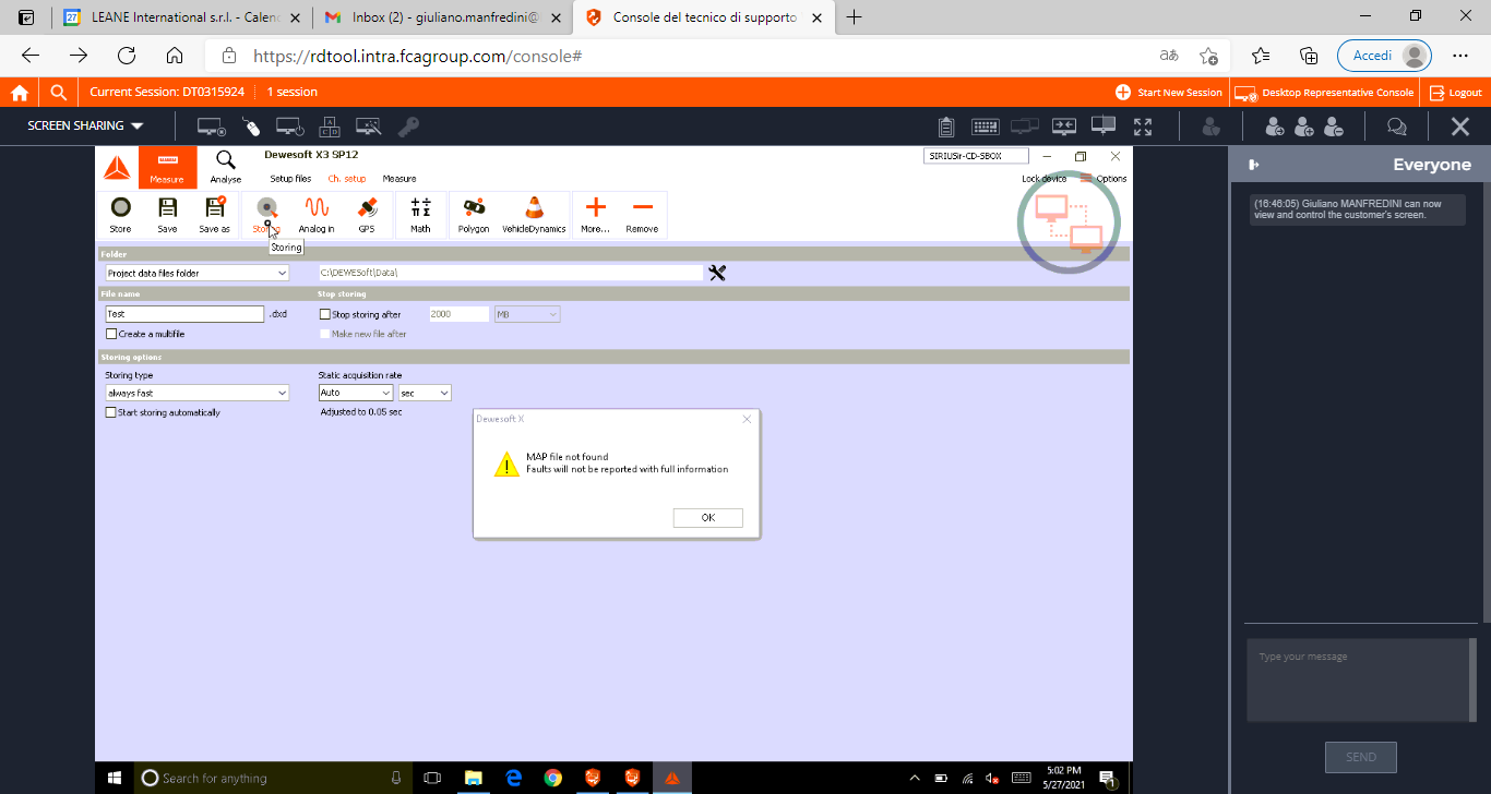 28.05.2021: Provato a cambiare il file Dewesoft.map, cancellare il file di progetto ma il problema non è risolto.